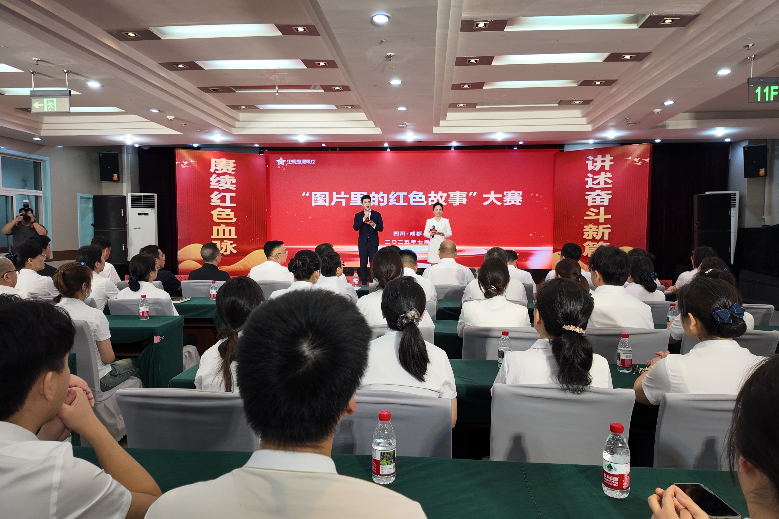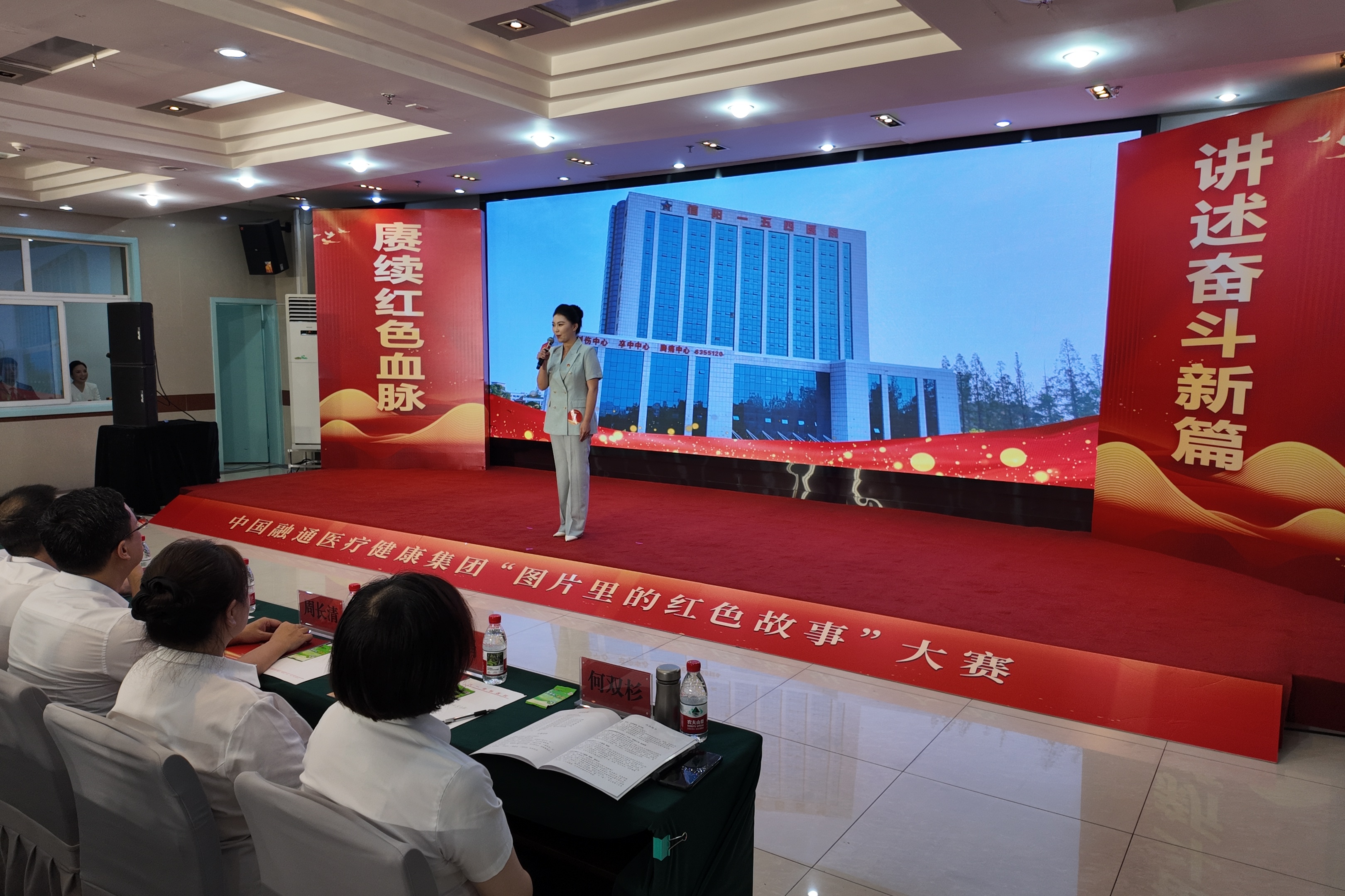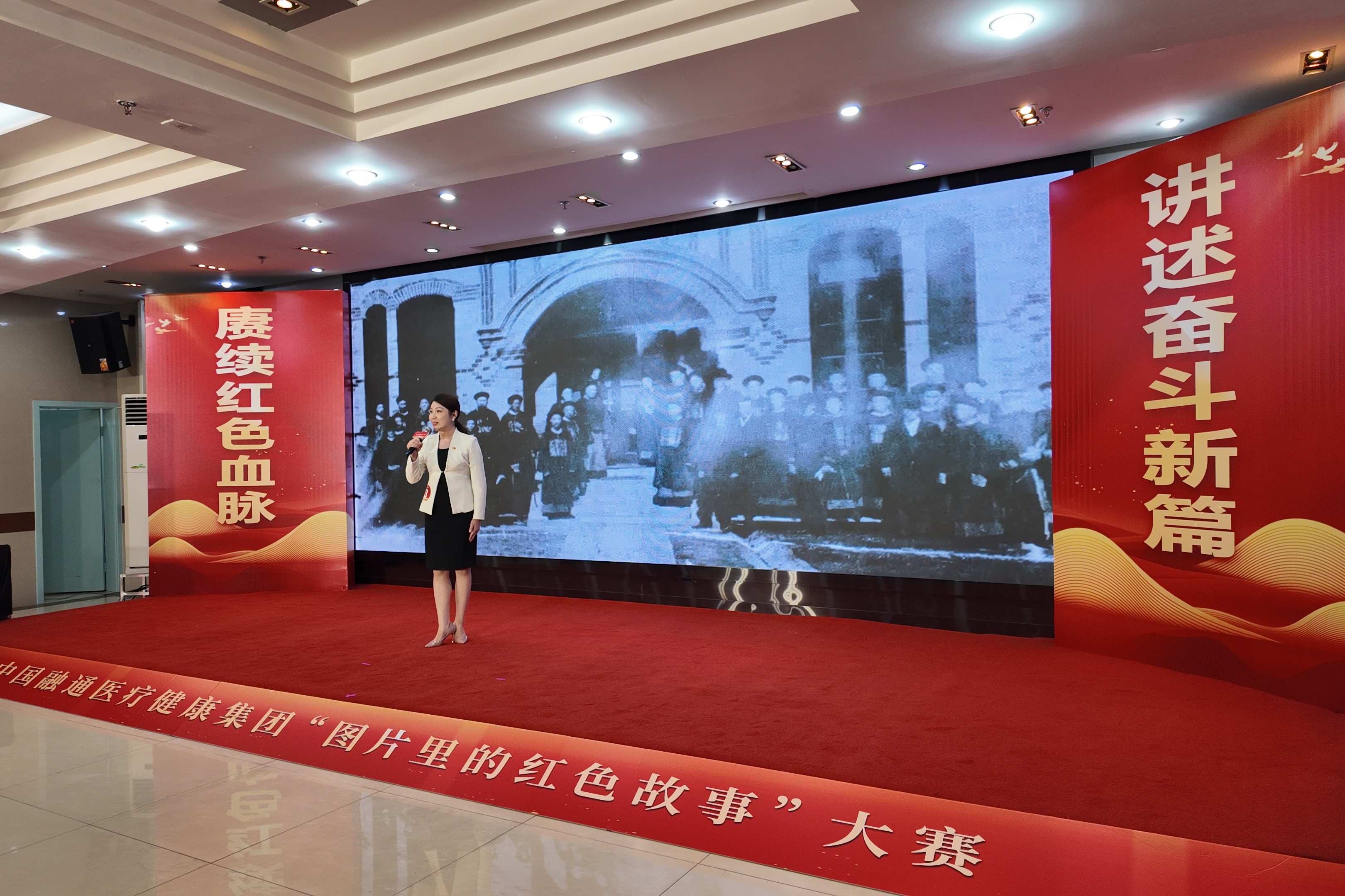 这是融通医疗健康“图片里的红色故事”大赛决赛现场的一幕。8家成员单位的讲述者,用一张张有温度的图片,串联起红色医疗事业从烽火岁月到新时代的发展脉络。
