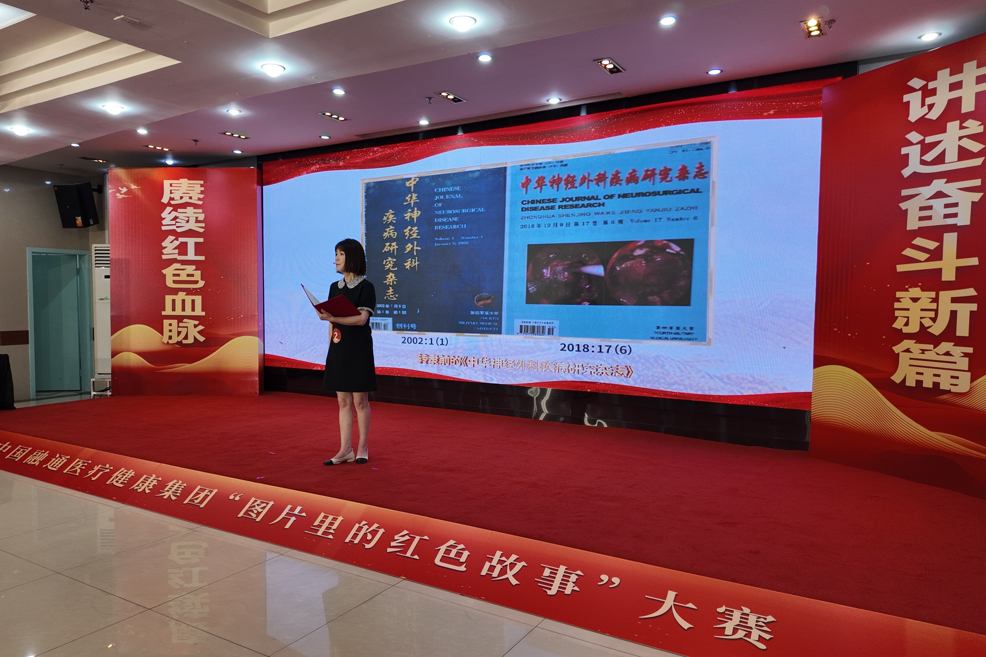 “《中华神经外科疾病研究杂志》在融通大家庭的护佑下,仅用3个月复刊,12个月重回中国科技核心期刊目录,成为融通旗下首批核心期刊之一。”融通医健期刊出版(北京)有限公司赵晓燕背后大屏幕上的杂志封面在舞美灯光下熠熠生辉。从暂时休刊到涅槃重生,这本期刊的变迁,恰似融通医疗健康“技术立身、创新求实”的生动写照,红医精神站在新起点上被赋予新的时代内涵。