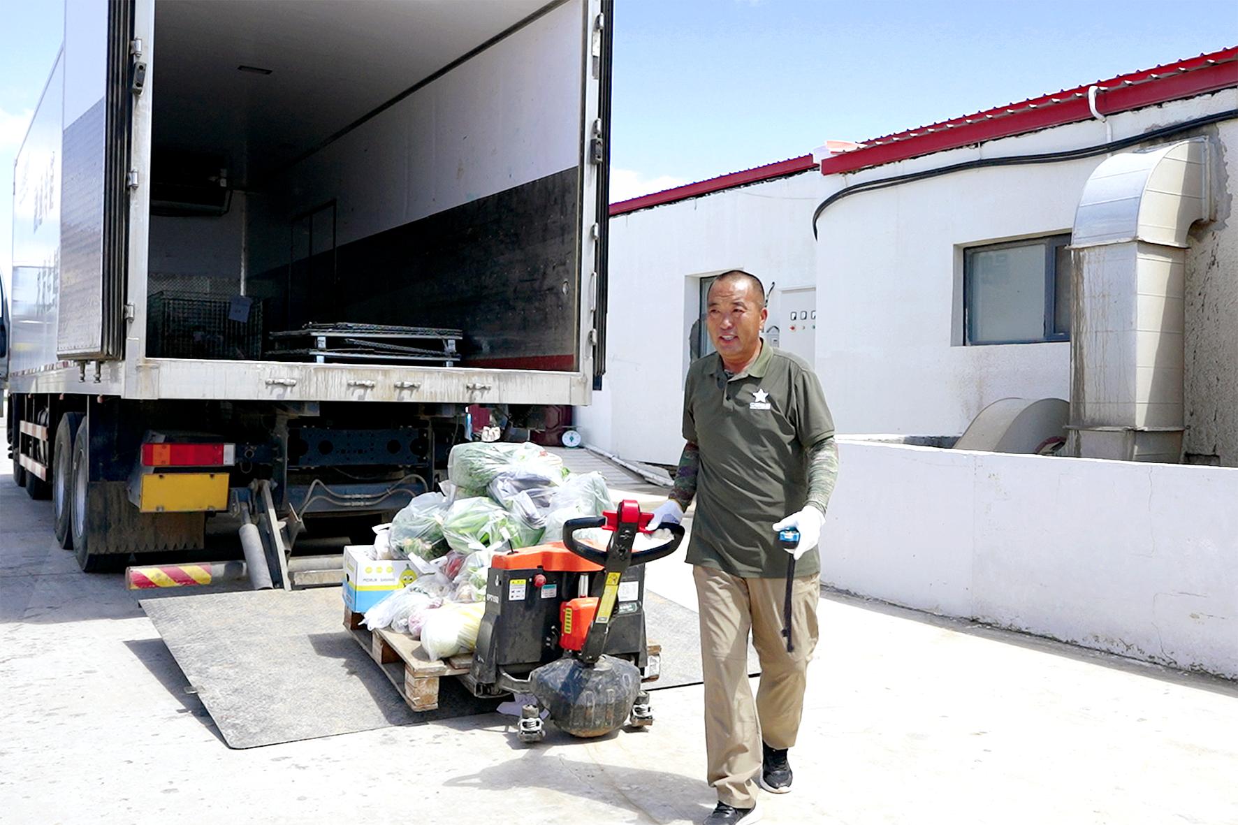 王师傅是保供车队里的老员工,也是往边防哨所运输的中坚力量。他几乎每天都在路上,披星戴月从物流中心出发和返回,完成一次次“千里走单骑”的保障任务。“作为一名退役军人,能为部队服务感觉特别亲切。这些货品早一点送到,战士们就能早一点吃上新鲜的饭菜。”他说着抬手擦了一把汗,黝黑的脸颊泛着劳作后的红。