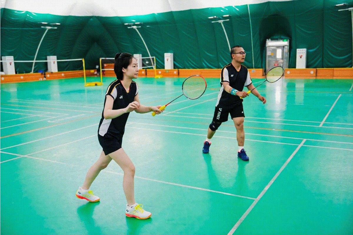 银球飞舞、竞显风采。羽毛球选手身姿矫健,网前精准处理考验技巧与耐心,精湛球技展示力量与速度的平衡。