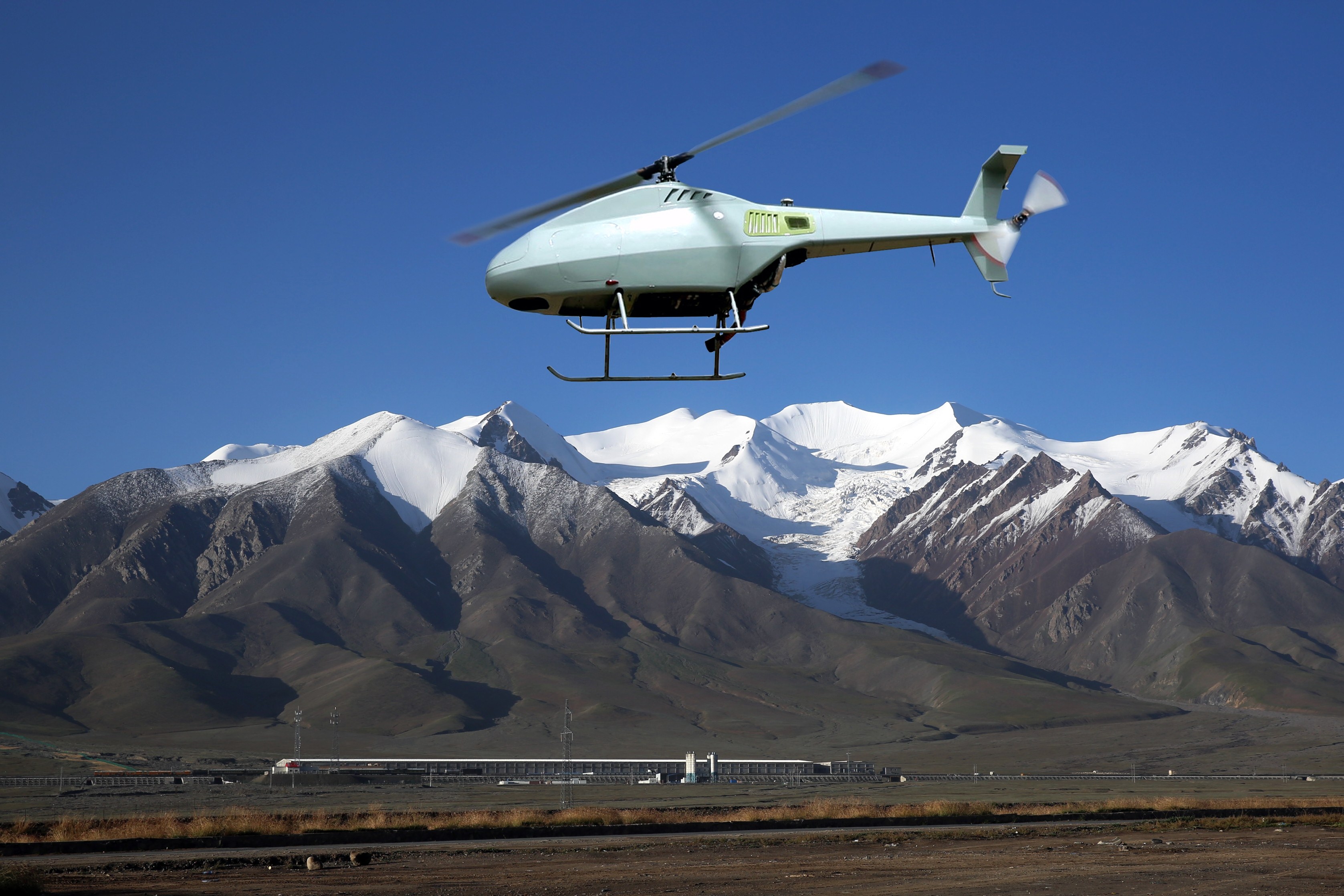 轻型无人直升机翱翔在雪域高原