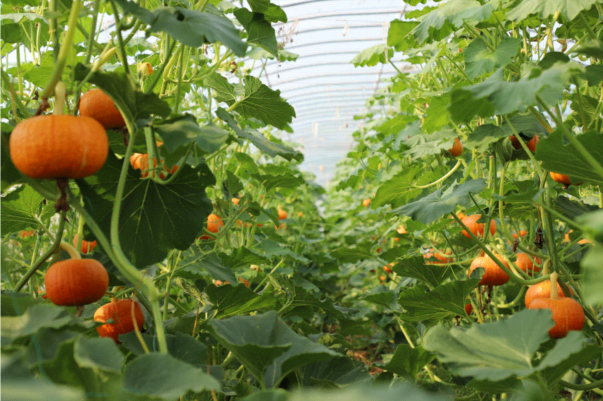 硕果盈枝香满园,融通农发北京区域公司环京农场设施大棚喜迎丰收季。鲜嫩的茄子闪耀着诱人的光泽,金灿灿的南瓜挂满枝头,皮薄多汁的吊秧瓜缀满棚架。工作人员正忙着采摘、分拣、装筐,一派热火朝天的繁忙景象。