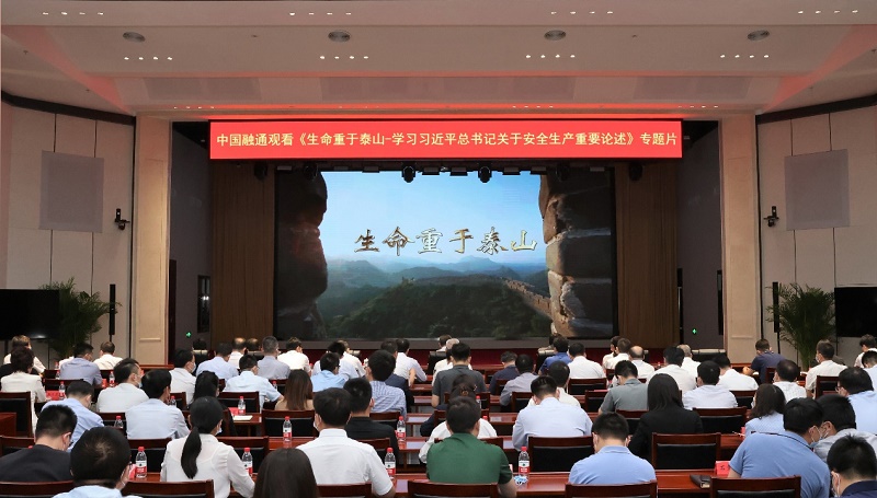 6月8日,中国融通集团组织学习观看《生命重于泰山——学习习近平总书记关于安全生产重要论述》电视专题片,进一步深刻领会和贯彻落实习近平总书记关于安全生产重要论述,牢固树立安全发展理念,强化底线思维和红线意识。