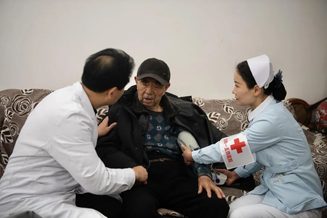信阳一五四医院医护团队上门探望老干部及遗属,细心了解其健康状况和日常生活需求。